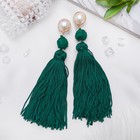 Серьги "Кисти" изыск, двойное плетение, цвет бело-изумрудный в золоте