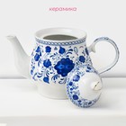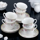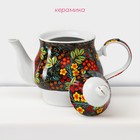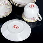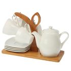 Посуда из керамики и фарфораНабор чайный "Эстет", 13 предметов: чайник 600 мл, 6 чашек 150 мл, 6 блюдец 14,5 см, на деревянной подставке