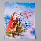 Пакет "Новый Год в лесу", полиэтиленовый с вырубной ручкой, 38х45 см, 45 мкм