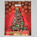 Пакет "Елочка на красном", полиэтиленовый с вырубной ручкой, 40х31 см, 60 мкм