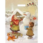 Пакет "Дед и мишки", полиэтиленовый с вырубной ручкой, 40х31 см, 60 мкм