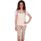 Пижама женская (футболка, бриджи), цвет бежевый, размер 48