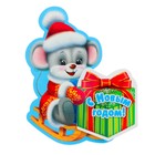 Открытка-мини "С Новым Годом!" глиттер, тройное сложение, мышка на лыжах