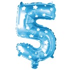 Шар фольгированный 16" Цифра 5, звёзды, индивидуальная упаковка, цвет голубой