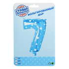 Шар фольгированный 16", цифра 7, звёзды, цвет голубой