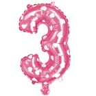 Шар фольгированный 16" Цифра 3, сердца, индивидуальная упаковка, цвет розовый