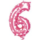 Шар фольгированный 16", цифра 6, индивидуальная упаковка, цвет розовый