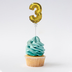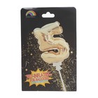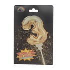 Шар-самодув 6" "Цифра 3" с палочкой, индивидуальная упаковка, цвет золотой