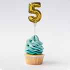 Шар-самодув 6" "Цифра 5" с палочкой, индивидуальная упаковка, цвет золотой