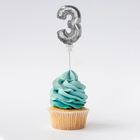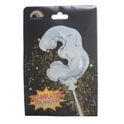 Шар-самодув 6" "Цифра 3" с палочкой, индивидуальная упаковка, цвет серебряный