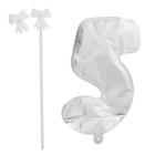 Шар-самодув 6" "Цифра 5" с палочкой, индивидуальная упаковка, цвет серебряный