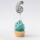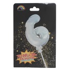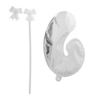 Шар-самодув 6" "Цифра 6" с палочкой, индивидуальная упаковка, цвет серебряный