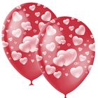 Шар латексный 12" "Сердца" декоратор, 5 ст., набор 25 шт, цвет красный