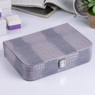 Ваша реклама Здесь 500 подарков - Сувениры - Шкатулки - Шкатулки из кожи - Шкатулка кожзам для украшений "Рептилия" серо-голубая глянец 6х28,5х18,5 см