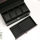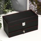 Ваша реклама Здесь 500 подарков - Сувениры - Шкатулки - Шкатулки из кожи - Шкатулка кожзам для украшений и часов 4 отделения "Чёрная с красной нитью" 11х22,5х11,5 см