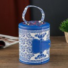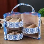 Ваша реклама Здесь 500 подарков - Сувениры - Шкатулки - Шкатулки из кожи - Шкатулка кожзам для украшений "Королевский узор" синяя 17х14,5х14,5 см