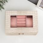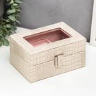 Ваша реклама Здесь 500 подарков - Сувениры - Шкатулки - Шкатулки из кожи - Шкатулка кожзам под часы 2 отделения и бижутерию "Рептилия белая" матовая 8х15,5х11 см
