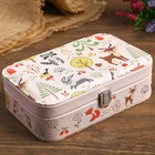 Ваша реклама Здесь 500 подарков - Сувениры - Шкатулки - Шкатулки из кожи - Шкатулка кожзам под часы 1 отделение и бижутерию "Лесные зверята" розовая 7х22,5х14,5 см