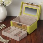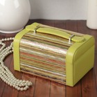 Ваша реклама Здесь 500 подарков - Сувениры - Шкатулки - Шкатулки из кожи - Шкатулка кожзам для украшений "Зелёная с золотыми полосками" 10х18х12,3 см