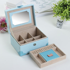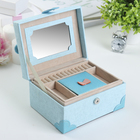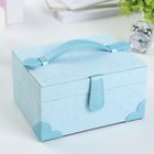 Ваша реклама Здесь 500 подарков - Сувениры - Шкатулки - Шкатулки из кожи - Шкатулка кожзам для украшений "Клеточка" голубая 9х17х13,5 см