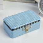 Ваша реклама Здесь 500 подарков - Сувениры - Шкатулки - Шкатулки из кожи - Шкатулка кожзам для украшений "Сеточка" голубая с золотом 5,5х14,7х8,5 см
