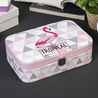 Ваша реклама Здесь 500 подарков - Сувениры - Шкатулки - Шкатулки из кожи - Шкатулка кожзам под часы 1 отделение и бижутерию "Фламинго и ромбы" 7,3х22х15 см