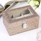 Ваша реклама Здесь 500 подарков - Сувениры - Шкатулки - Шкатулки из кожи - Шкатулка кожзам под часы 3 отделения "Мелкая клетка" мокко 7,5х16х11 см