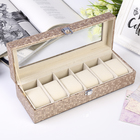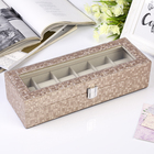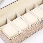 Ваша реклама Здесь 500 подарков - Сувениры - Шкатулки - Шкатулки из кожи - Шкатулка кожзам под часы 6 отделений "Мелкая клетка" мокко 8,5х30,5х11,5 см