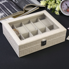 Ваша реклама Здесь 500 подарков - Сувениры - Шкатулки - Шкатулки из кожи - Шкатулка кожзам под часы 10 отделений "Греческий орнамент" сливки 8х25,5х20,5 см