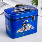 Ваша реклама Здесь 500 подарков - Сувениры - Шкатулки - Шкатулки из кожи - Шкатулка кожзам с зеркалом "Русалка и единорог" синий глянец 17х22х14,5 см