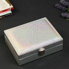 Ваша реклама Здесь 500 подарков - Сувениры - Шкатулки - Шкатулки из кожи - Шкатулка кожзам для украшений "Завитки" серебро голография 6,3х13,5х17,5 см
