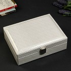 Ваша реклама Здесь 500 подарков - Сувениры - Шкатулки - Шкатулки из кожи - Шкатулка кожзам для украшений "Серебристые полоски" белая 7х21,5х16,5 см
