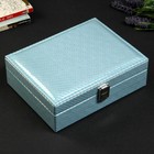 Ваша реклама Здесь 500 подарков - Сувениры - Шкатулки - Шкатулки из кожи - Шкатулка кожзам для украшений "Серебристые полоски" голубая 7х21,5х16,5 см