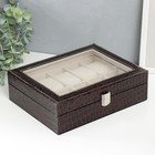 Ваша реклама Здесь 500 подарков - Сувениры - Шкатулки - Шкатулки из кожи - Шкатулка кожзам под часы 10 отделений "Питон коричневый с прожилками" 7,5х25,5х20 см