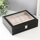 Ваша реклама Здесь 500 подарков - Сувениры - Шкатулки - Шкатулки из кожи - Шкатулка кожзам под часы 10 отделений "Питон чёрный с белой строчкой" 7,5х25,5х20 см
