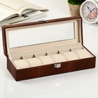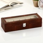 Ваша реклама Здесь 500 подарков - Сувениры - Шкатулки - Шкатулки из кожи - Шкатулка кожзам под часы 6 отделений "Питон коричневый с прожилками" 11х31х7,5 см