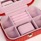 Ваша реклама Здесь 500 подарков - Сувениры - Шкатулки - Шкатулки из кожи - Шкатулка кожзам под часы 1 отделение и бижутерию "Полосы" красная лак 7х20,5х14 см