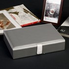 Ваша реклама Здесь 500 подарков - Сувениры - Шкатулки - Шкатулки из кожи - Шкатулка кожзам для украшений "Серебристая с белым ободком" 7х27х19 см